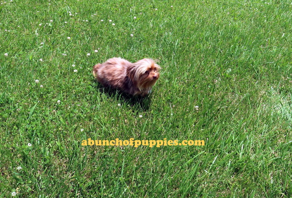 Yorkie Chocolate, "Lincoln" C.K.C. & A.P.R.I. reg. This is a very sweet guy. He is a lover not a fighter! |  |