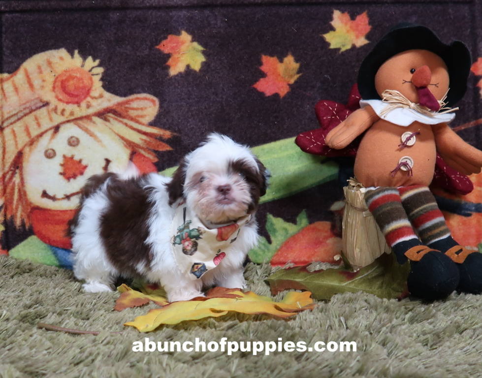 MALE Deep Chocolate & White. With brown nose and Yellow/Green eyes! @ 7 wks old. $636.